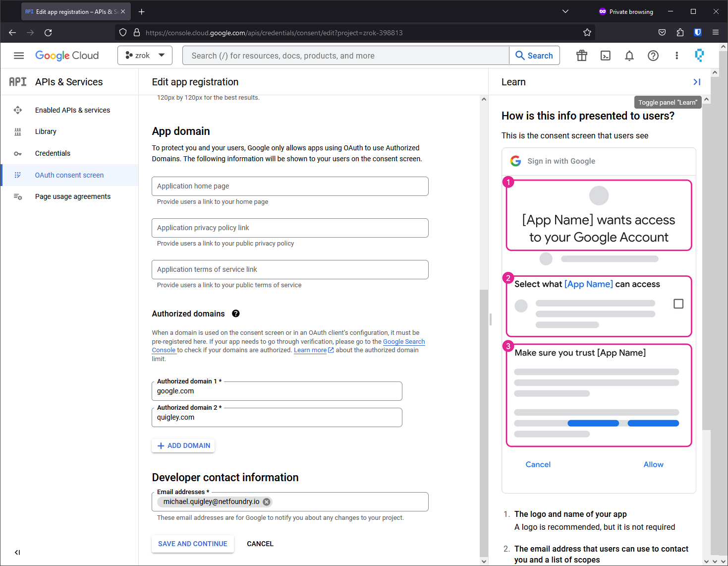 OAuth consent screen