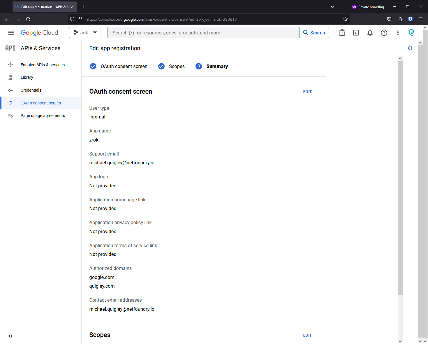 Add the ../auth/userinfo.email scope (required for zrok to receive user email addresses):